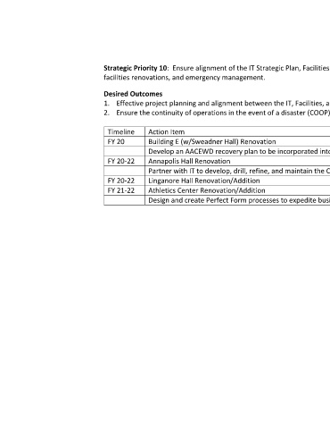 Strategic Priority 10: Ensure alignment of the IT Strategic Plan, Facilities Maser Plan, and AACEWD Plan goals in areas such as IT security,